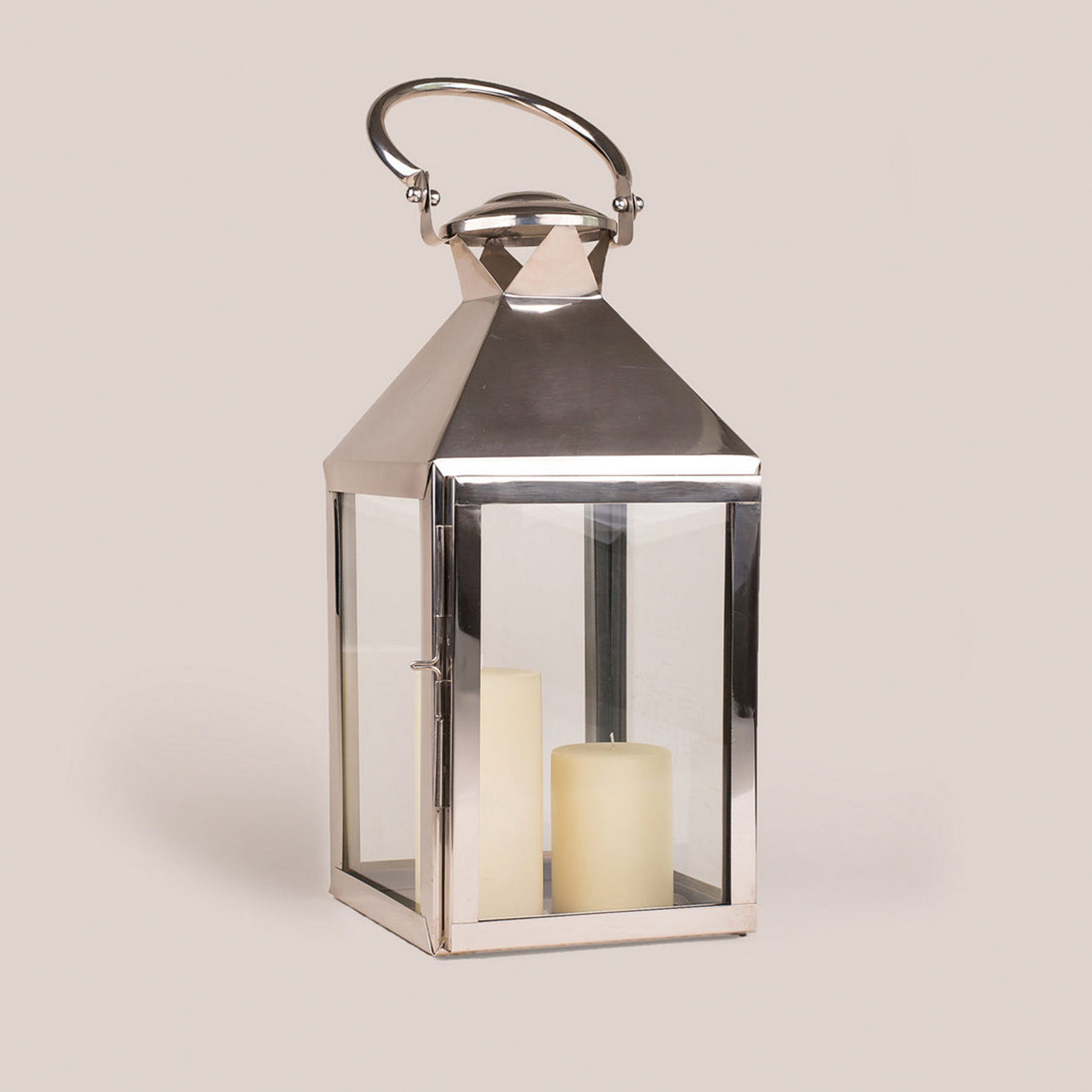 Crafted from materials that shine brightly once illuminated with firelight, this Claire Lantern is made from glass and stainless steel.