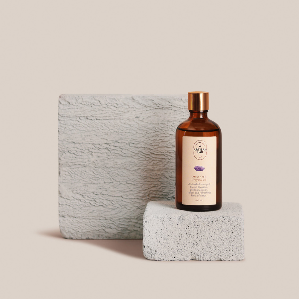 Take in the calming aromas that engulf your senses as you gently spray the Amethyst Fragrance oil. One sniff will transport you into an orchard of citrus trees that emit refreshing scents that delight. As you imagine yourself walking through the endless orchard, you pick up notes of honeyed Neroli blossoms, subtle spices and green metallics.
