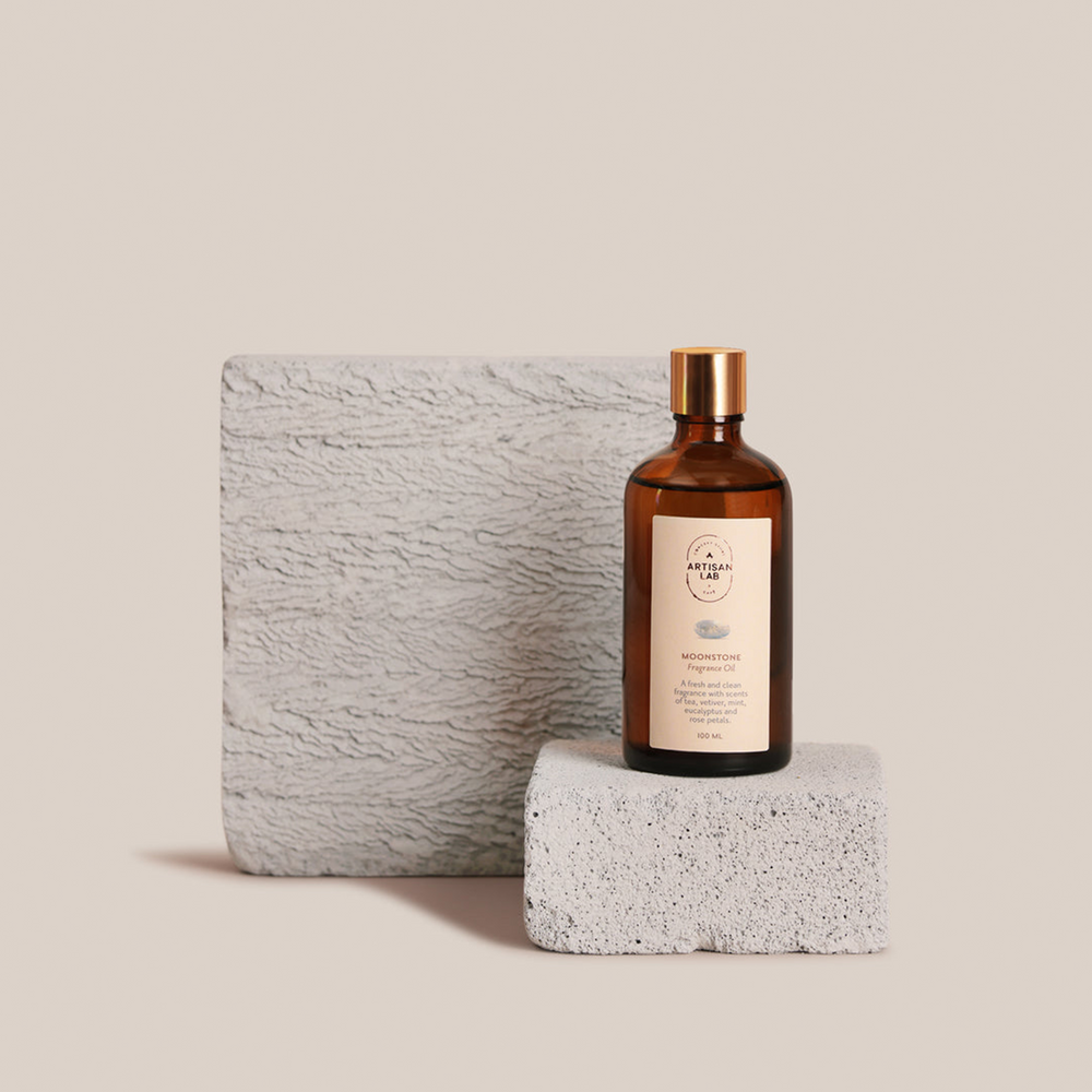 Take in the calming aromas that engulf your senses as you gently spray the Moonstone Room Spray. They invite you to close your eyes and imagine paving your way at night-time with the full moon’s light illuminating gardens of tea, mint, vetiver, eucalyptus, and rose.