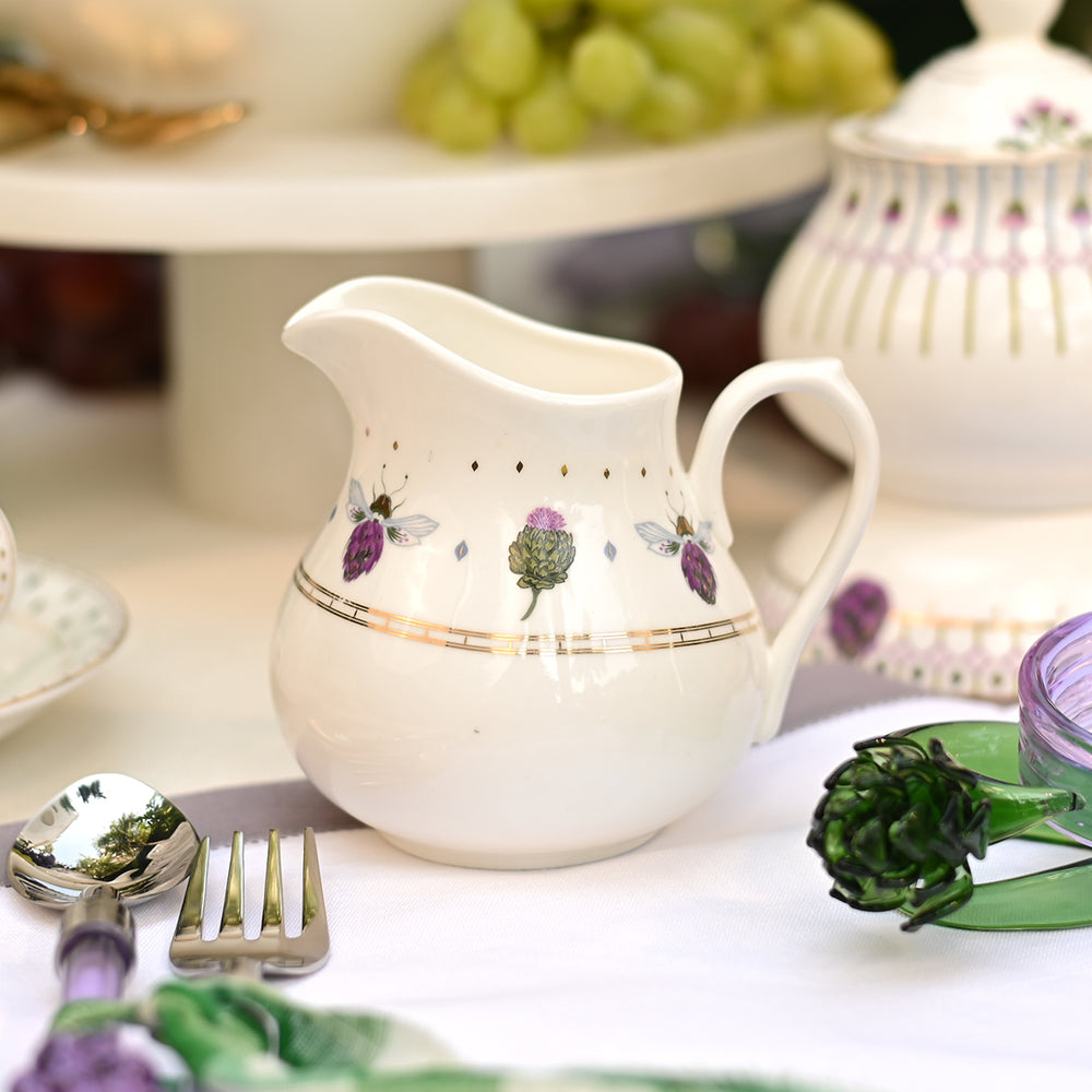 The artichoke motif symbolises resilience and prosperity, while the playful bees represent harmony and abundance.