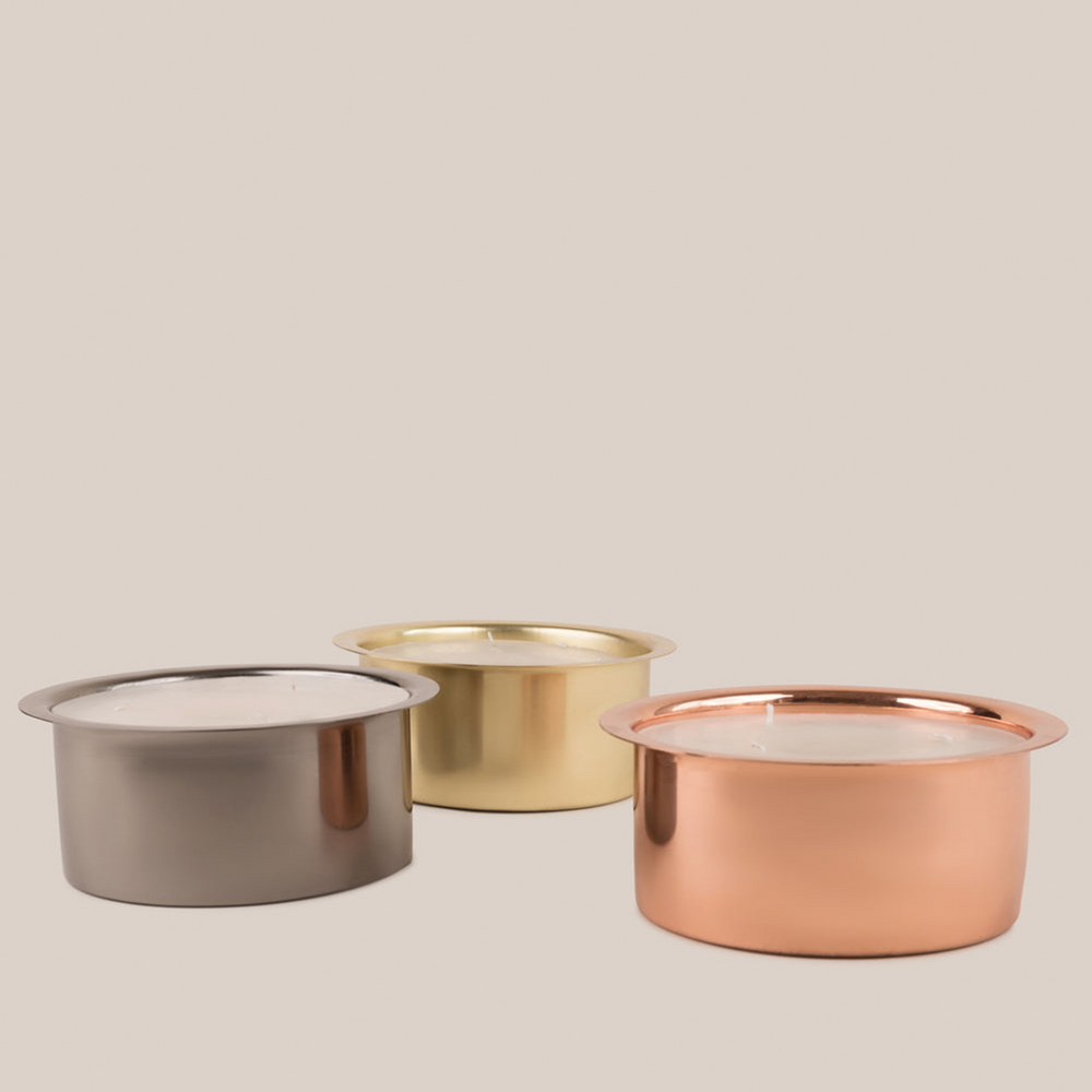 Adorn your spaces with our Jorum candles that bring with them the magic of yore. Crafted from stainless steel and quality wax, the candles are suited for outdoor use as well. The candles are designed to be reused and refilled easily. The oxidized grey hue of gunmetal will illuminate brilliantly under the firelight.