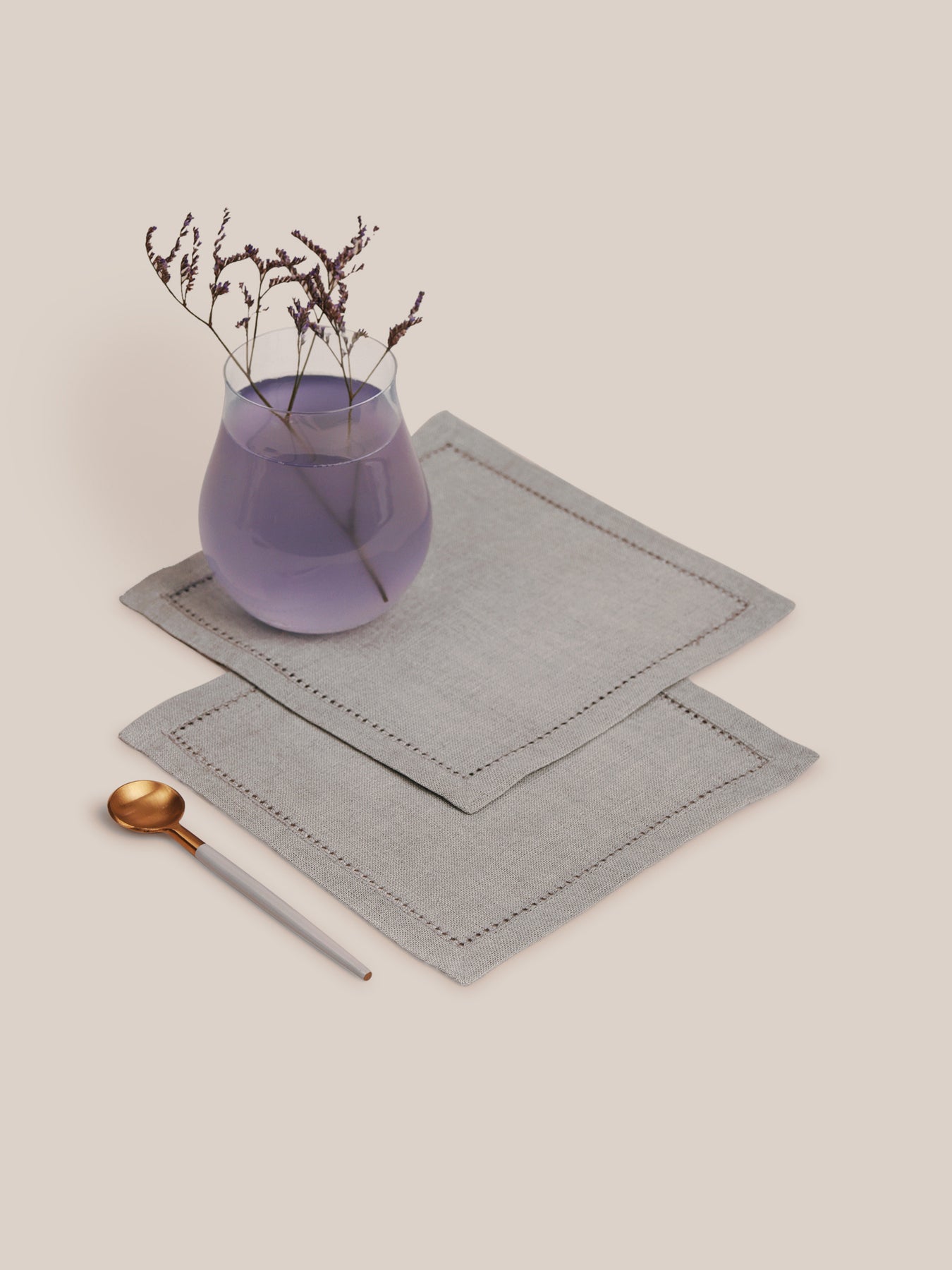 Crafted with a reverence for pure materials, the Lino Collection comprises of 100% linen products made from the finest flax. The breathable fabric has anti-allergic properties and comes with subtle irregularities that hint at its natural beauty. Suited for any table, the grey-hued cocktail napkins are further adorned with delicate double-hole embroidery.